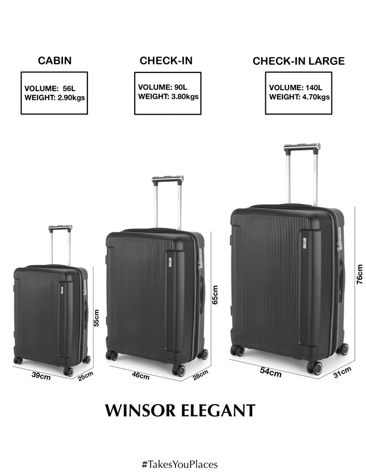 The Winsor Elegant collection is tailored for travelers who value style, reliability, and versatility. Its four size options make it suitable for a variety of travel occasions, from solo adventures to family vacations.