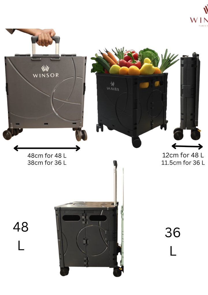 Perfect for shopping, office supplies, travel, and home organization, the Winsor trolley crate folds flat when not in use, making it easy to store and carry. Lightweight yet sturdy, it's the ultimate utility companion for your on-the-go lifestyle.