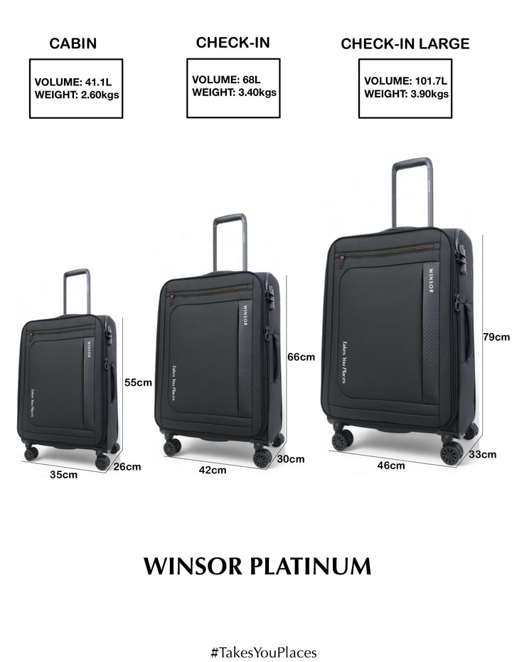 The WINSOR PLATINUM Series Soft Luggage is a premium travel companion designed to offer superior durability, functionality, and elegance. Tailored for discerning travelers, the PLATINUM series combines sophisticated design with advanced features to ensure a seamless travel experience.