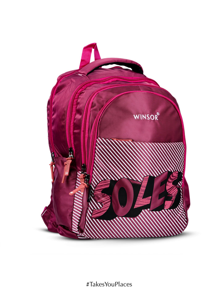 The Winsor SoloEdge Backpack is designed for those who like to stand out with style and confidence. Featuring a striking maroon shade with bold “SOLES” graphic print, this backpack blends sporty energy with everyday practicality. Perfect for school, college, or casual outings, SoloEdge combines durable fabric, roomy compartments, and ergonomic comfort to match your active lifestyle.
