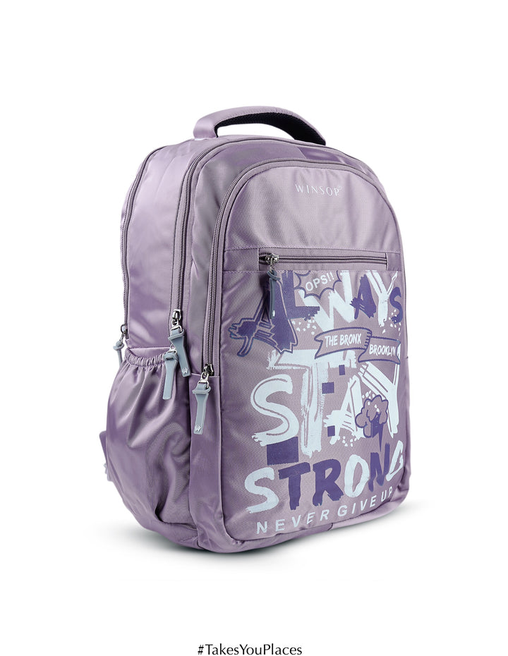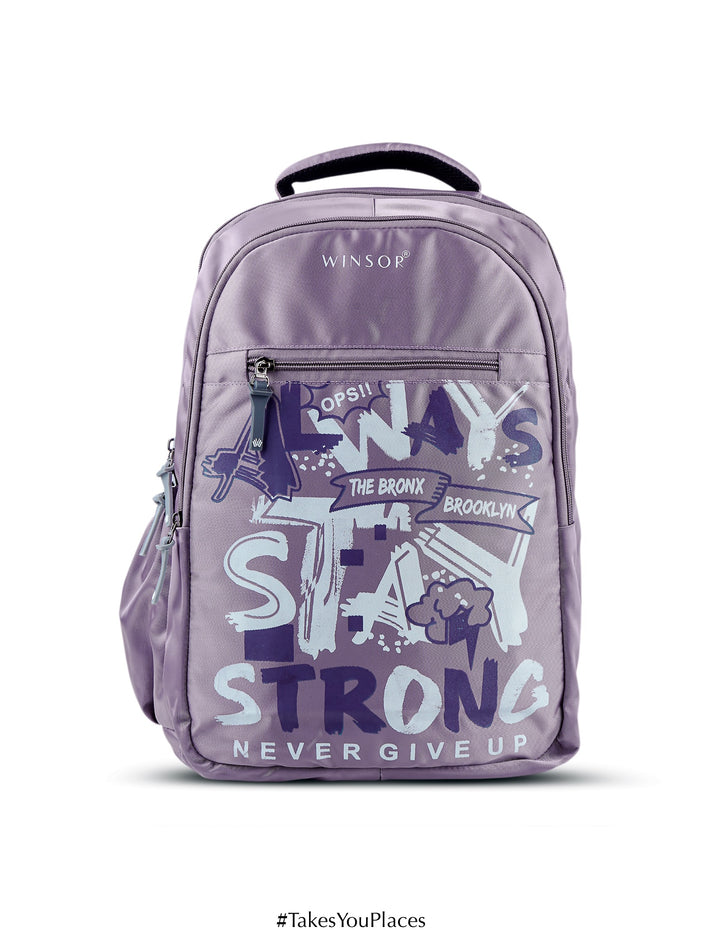 Stay inspired wherever you go with the Winsor StrongEdge Backpack. Designed in a stylish lavender tone with bold motivational graffiti prints, this backpack is more than just a carry bag – it’s an attitude. With spacious compartments, durable material, and comfortable straps, it’s perfect for students, casual outings, or daily commutes. StrongEdge keeps your essentials safe while reminding you to “Always Stay Strong – Never Give Up.”