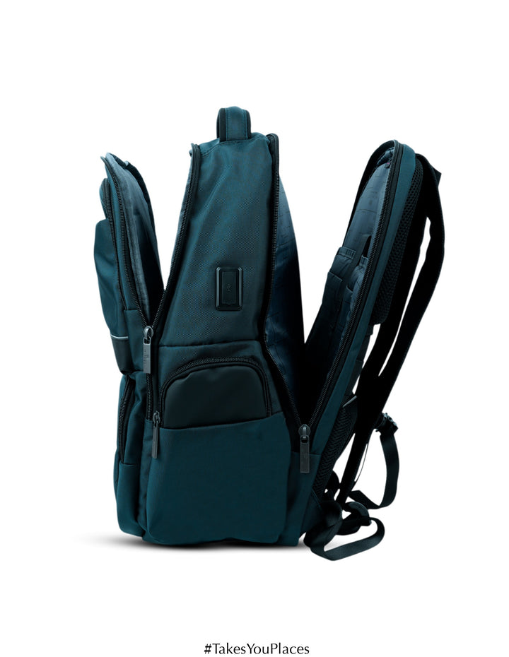 Redefine your travel and work experience with the Winsor Elevon Backpack – a stylish, functional, and tech-friendly companion. Crafted in a striking teal with sleek black accents, Elevon blends durability with modern convenience. With built-in USB charging ports, hidden back security pockets, and a luggage sleeve for effortless travel, it’s designed to keep you connected, organized, and comfortable wherever you go.